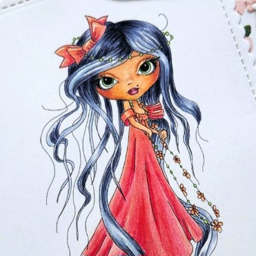 I colored her dress with pink and orange Copic markers to give her a warm look. The digital sentiment is from Winnie Celebrations 3 and the digital papers came from the Honey Pie Just Lovely Paper Bundle and Eden Collection Paper Heaven Bundle.