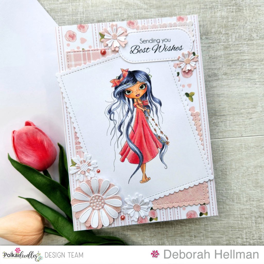 Hello crafty friends, for this week, I chose to make a birthday card with the Octavia Thinking digital stamp from Polkadoodles in honor of Nikky Hall’s Birthday.