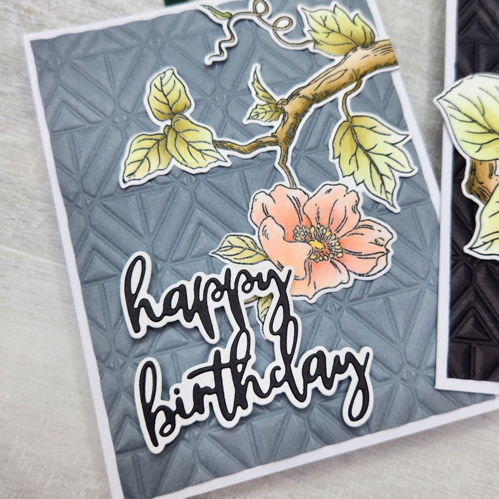 For my background, I used Altenew’s Geo Triangles Geometric 3D Embossing Folder.