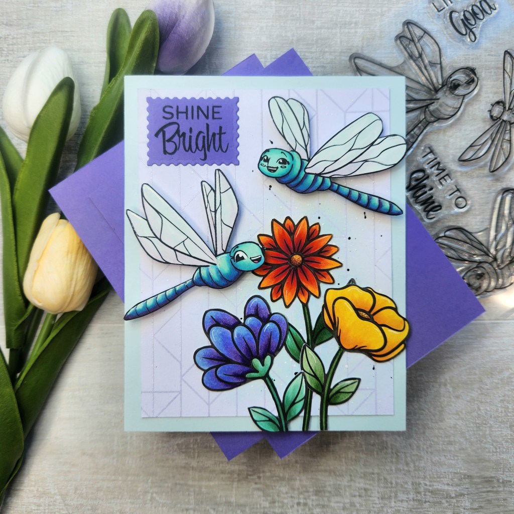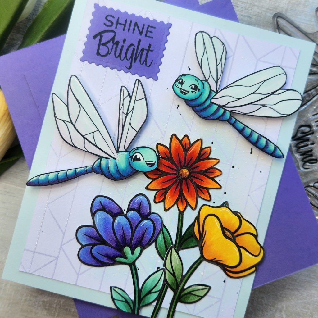 I also added a little Distress Oxide Ink behind the flowers to give them a glow. All images were colored with Copic Alcohol Ink Markers.