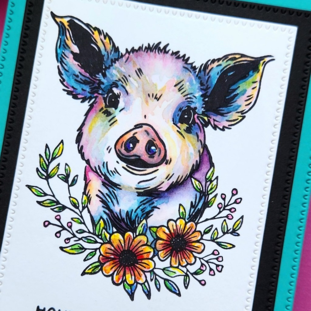 For this watercolor card, I decided to paint a whimsical version of Daisy. I love how she came out using lots of fun colors.