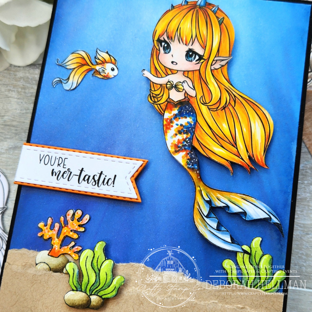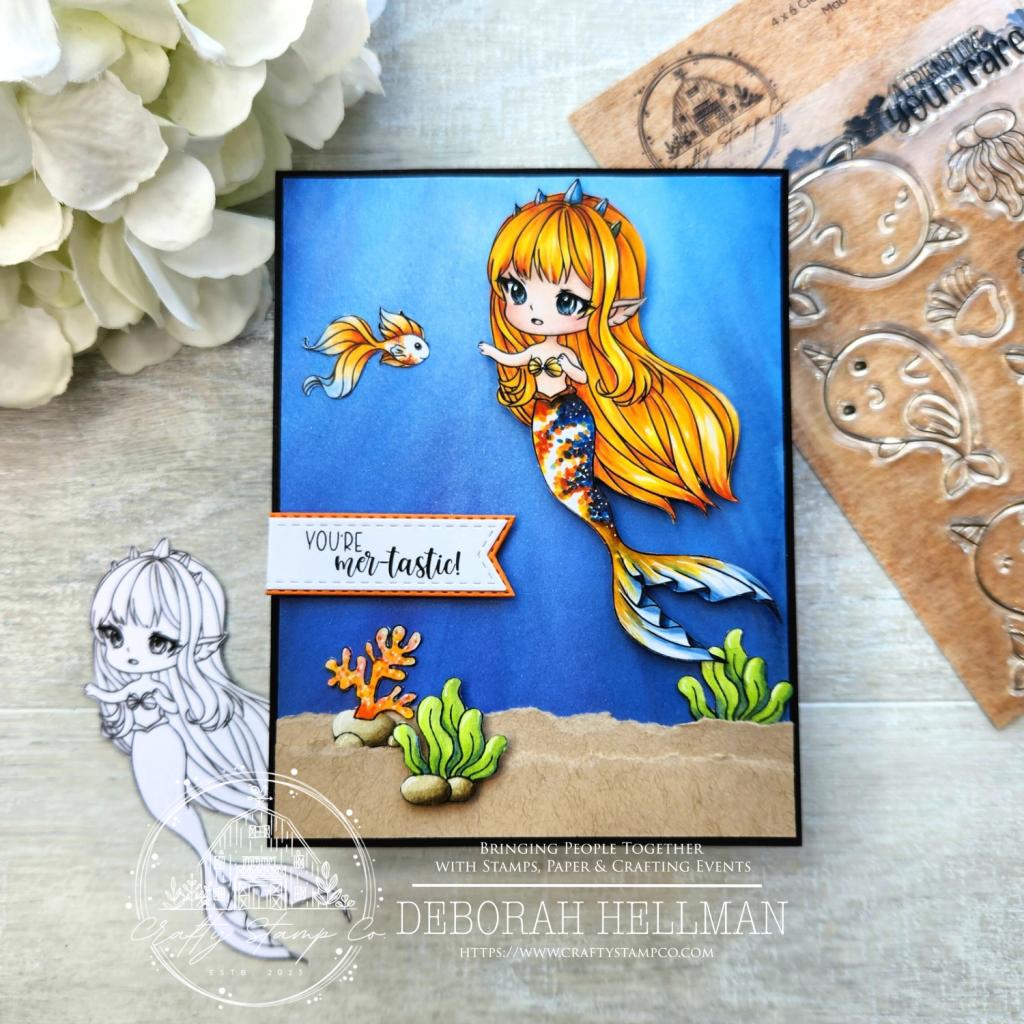 Hello all, Crew Member Deborah Hellman here to share with you my newest mermaid card using the Finned Friends and Rare & Extraordinary Stamp Sets. Today happens to be my birthday, and I thought this “mer-tastic” encouragement card would be perfect for today!