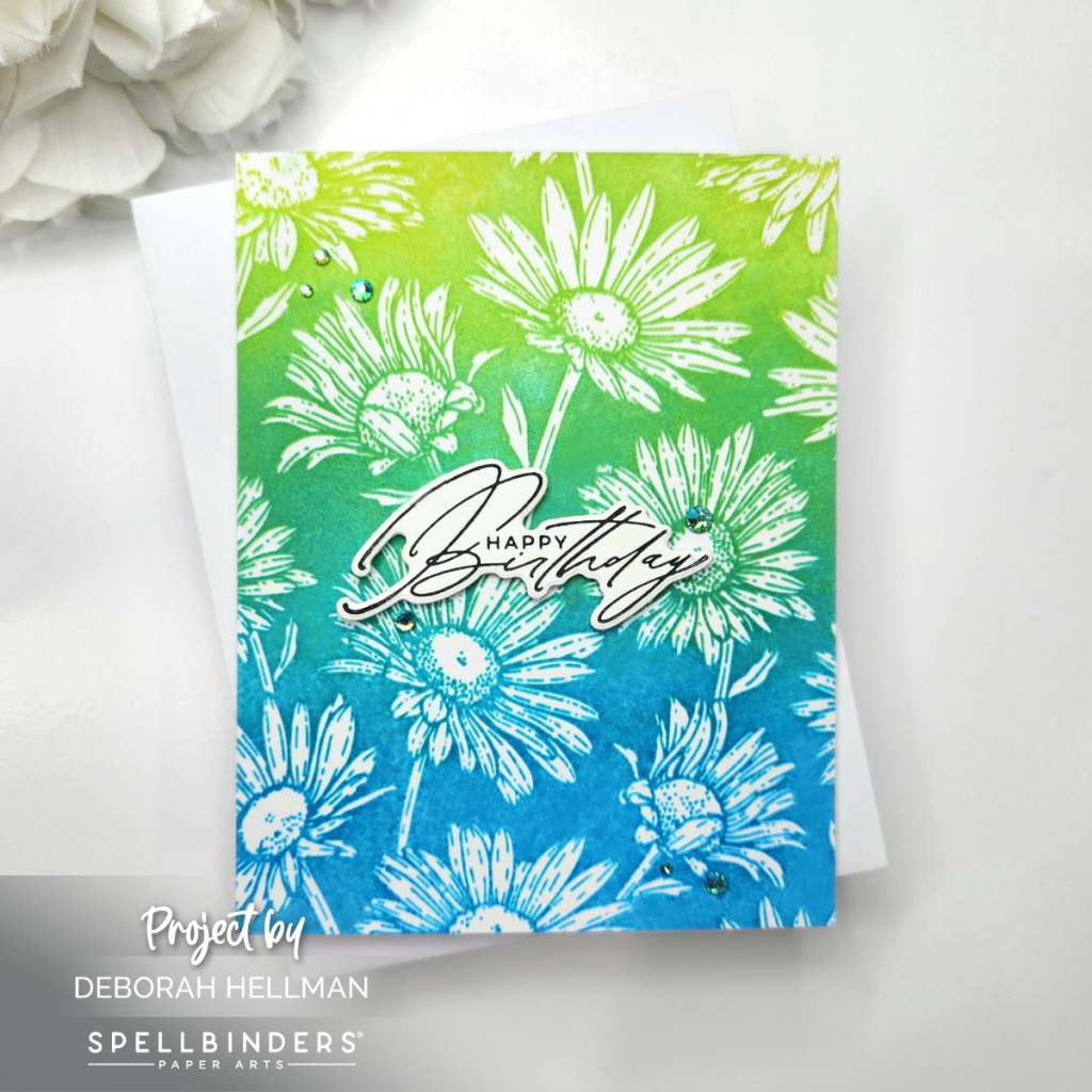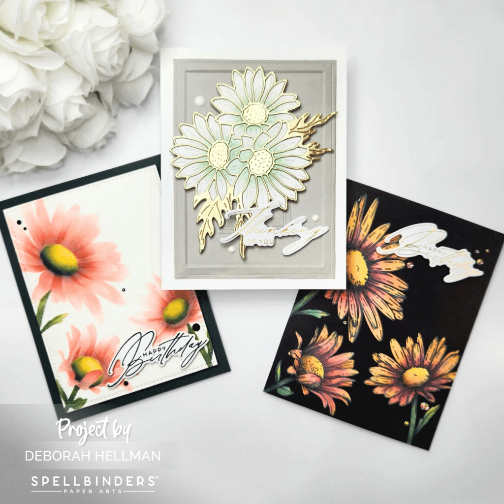 For the Yana’s Daisies collection from Spellbinders, I made a total of 6 cards. It is such a wonderful set. There are several Better-Press plates and dies, stencils, a die set, and an embossing folder.