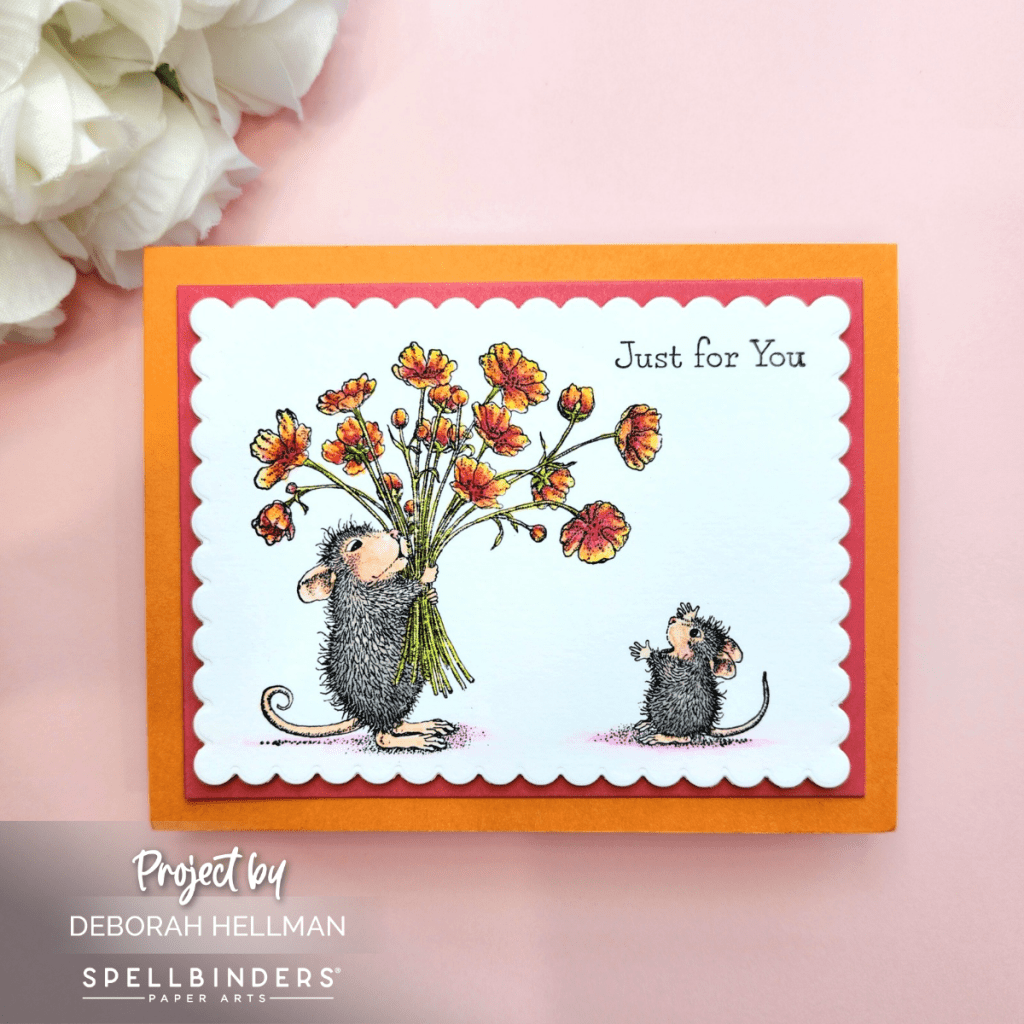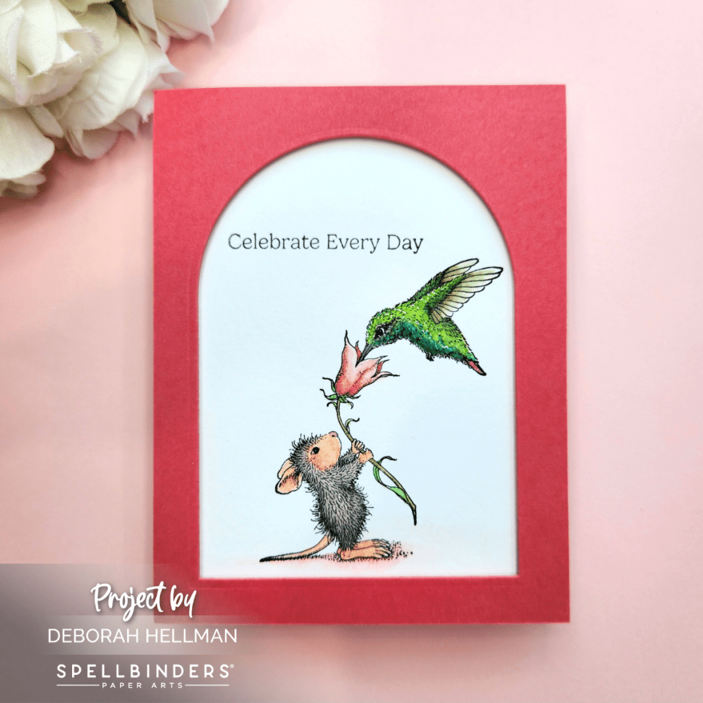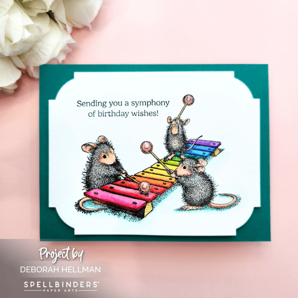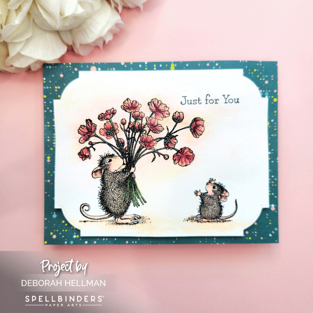 🤩 I love House-Mouse; and this month, Spellbinders does not disappoint. The new House-Mouse Collection Rare Bloom is adorable. All of the House-Mouse stamps are easy to color because the stamps have so much detail. The shadows are done for you. You could use any transparent or semi-transparent medium. For my cards, I used Altenew’s Artists’ Watercolor 24 Pan Set.