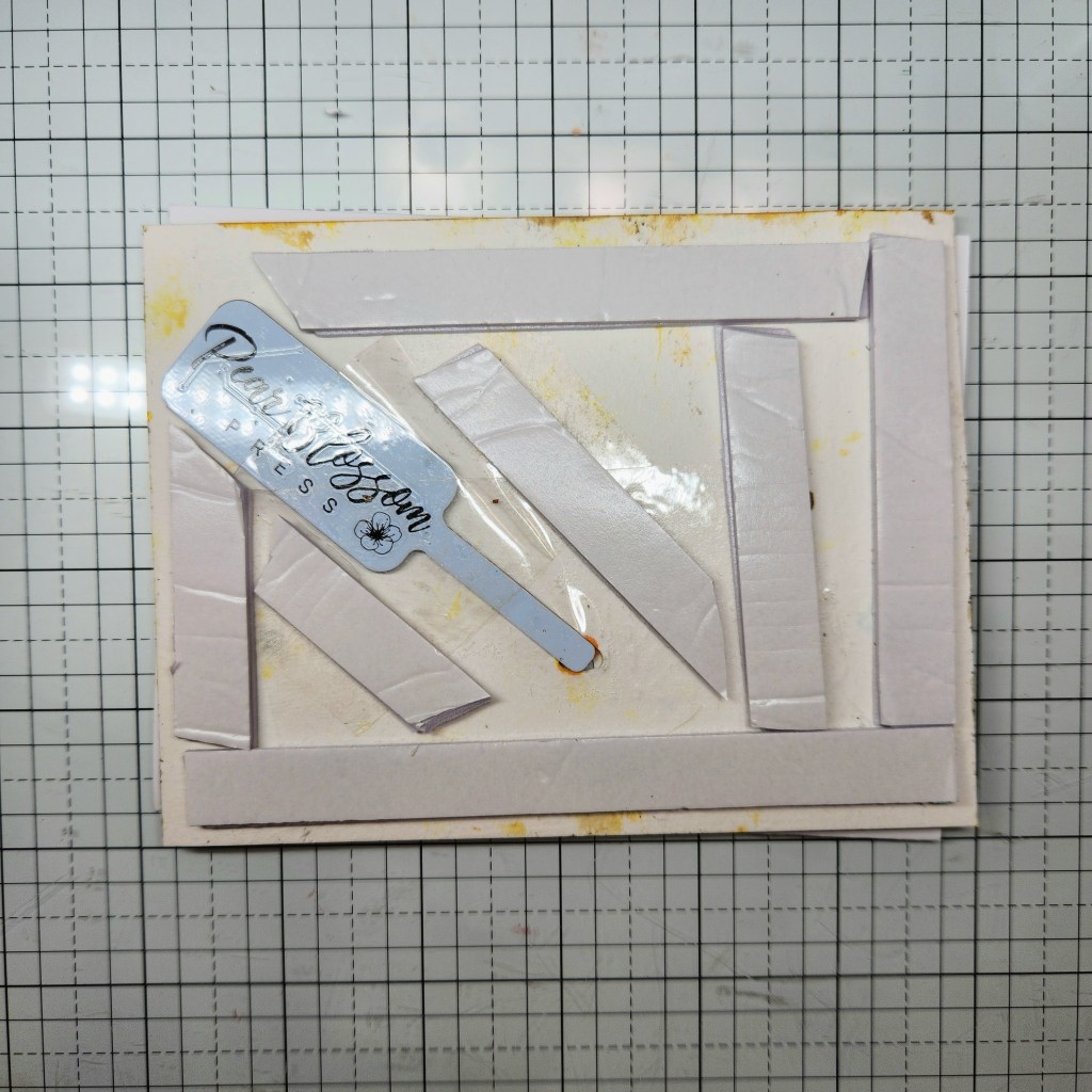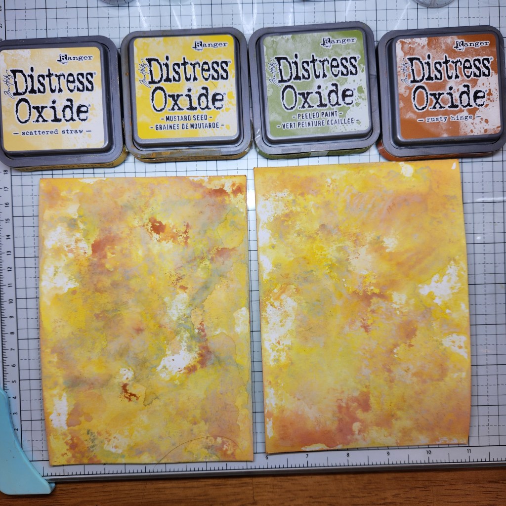 I created the background using LOTS of layers on watercolor paper. I cut my paper slightly larger than what I want for the finished background so that I can trim off edges that I don’t want.