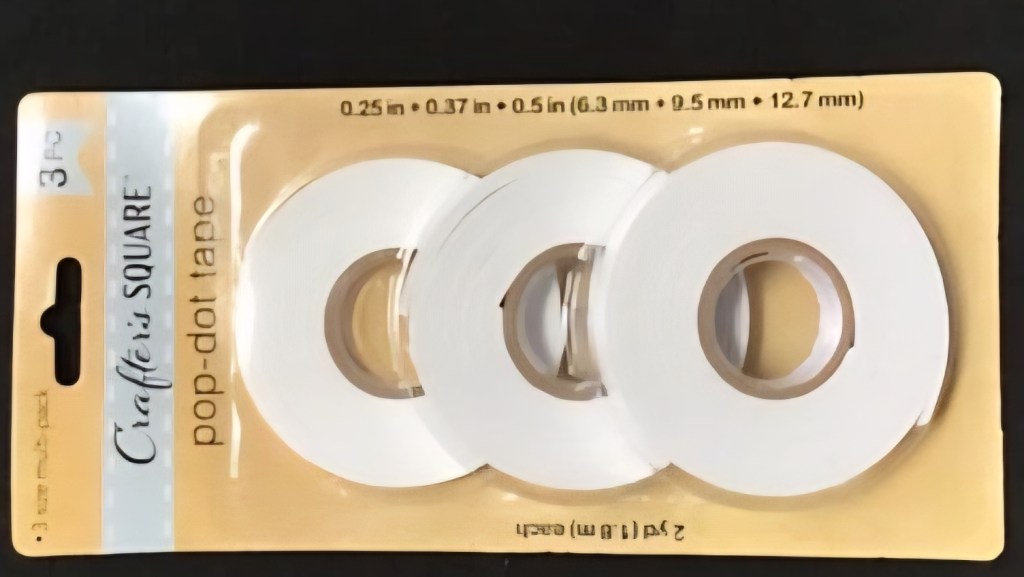 12. Adhesive foam tape – I actually like the rolls I get from Dollar Tree. $1.25 for 3 rolls. I also get the Dollar Tree makeup brushes with the handle for ink blending larger areas. I keep a separate set of brushes for my Distress Oxide Inks because they are a hybrid type ink.